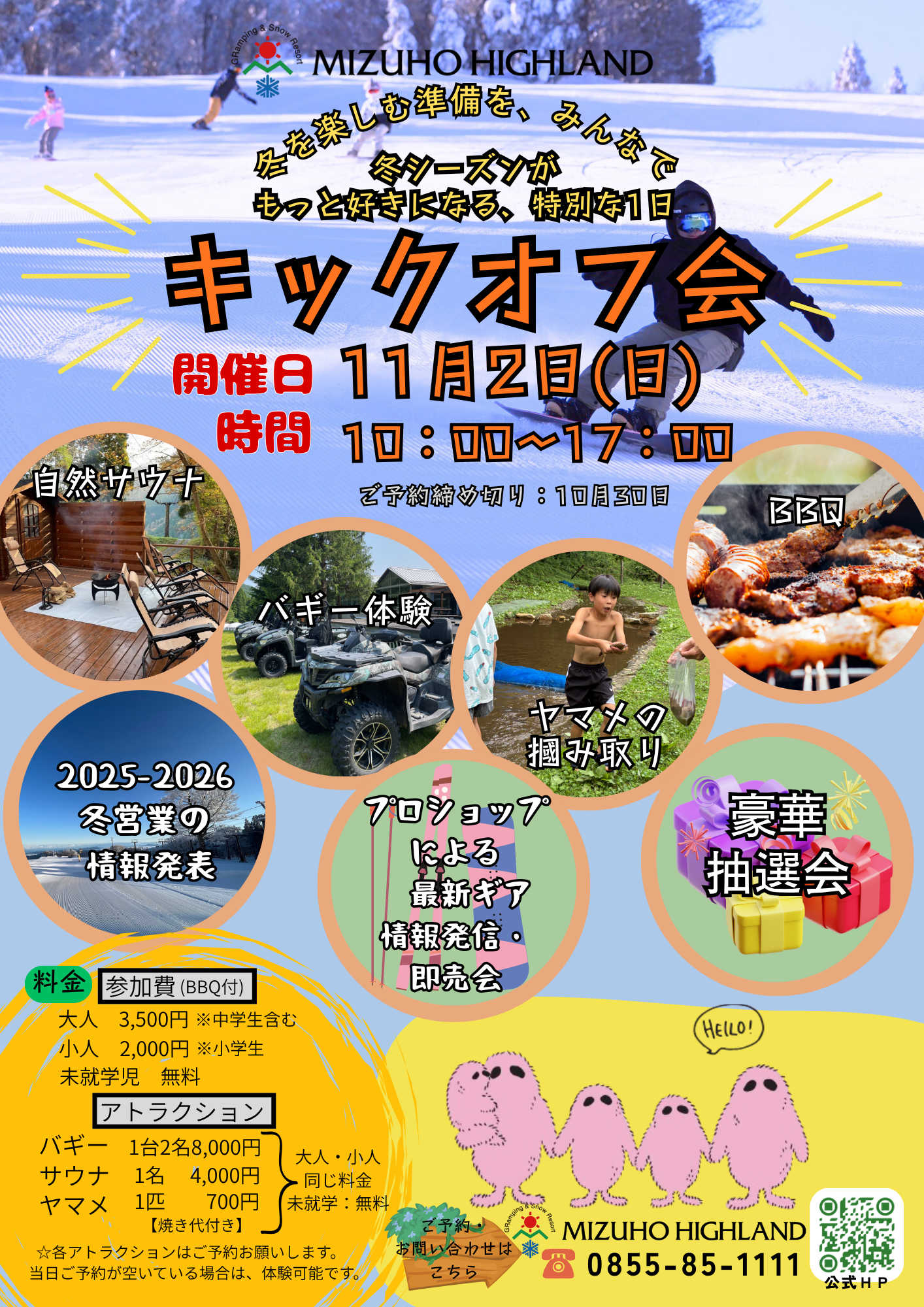 アトラクション、冬シーズン情報、即売会、豪華抽選会