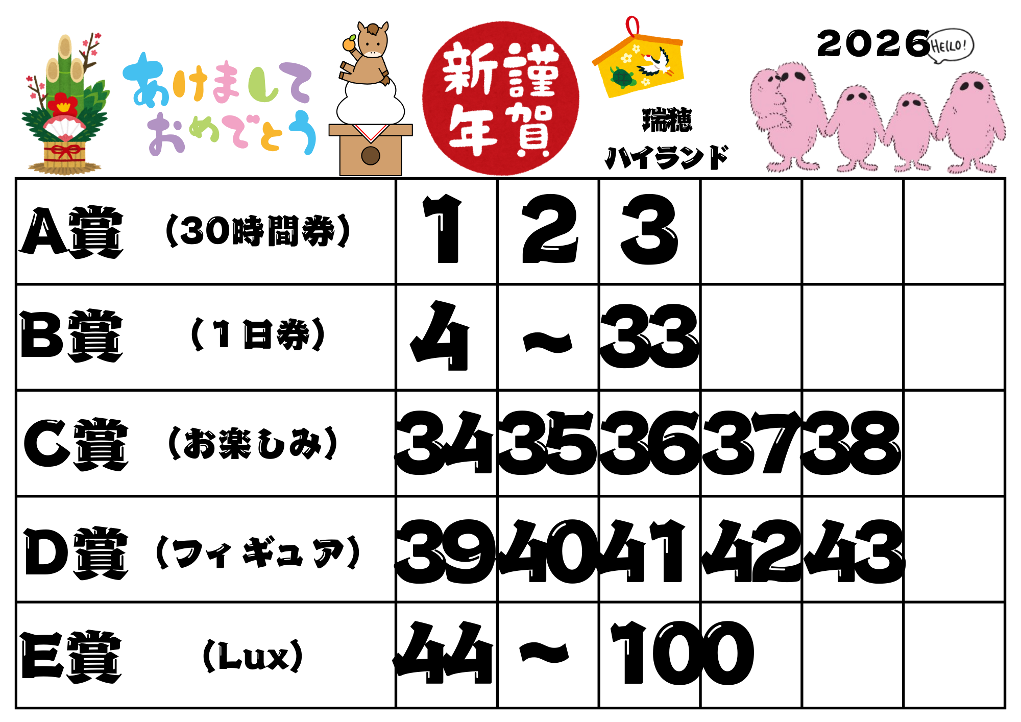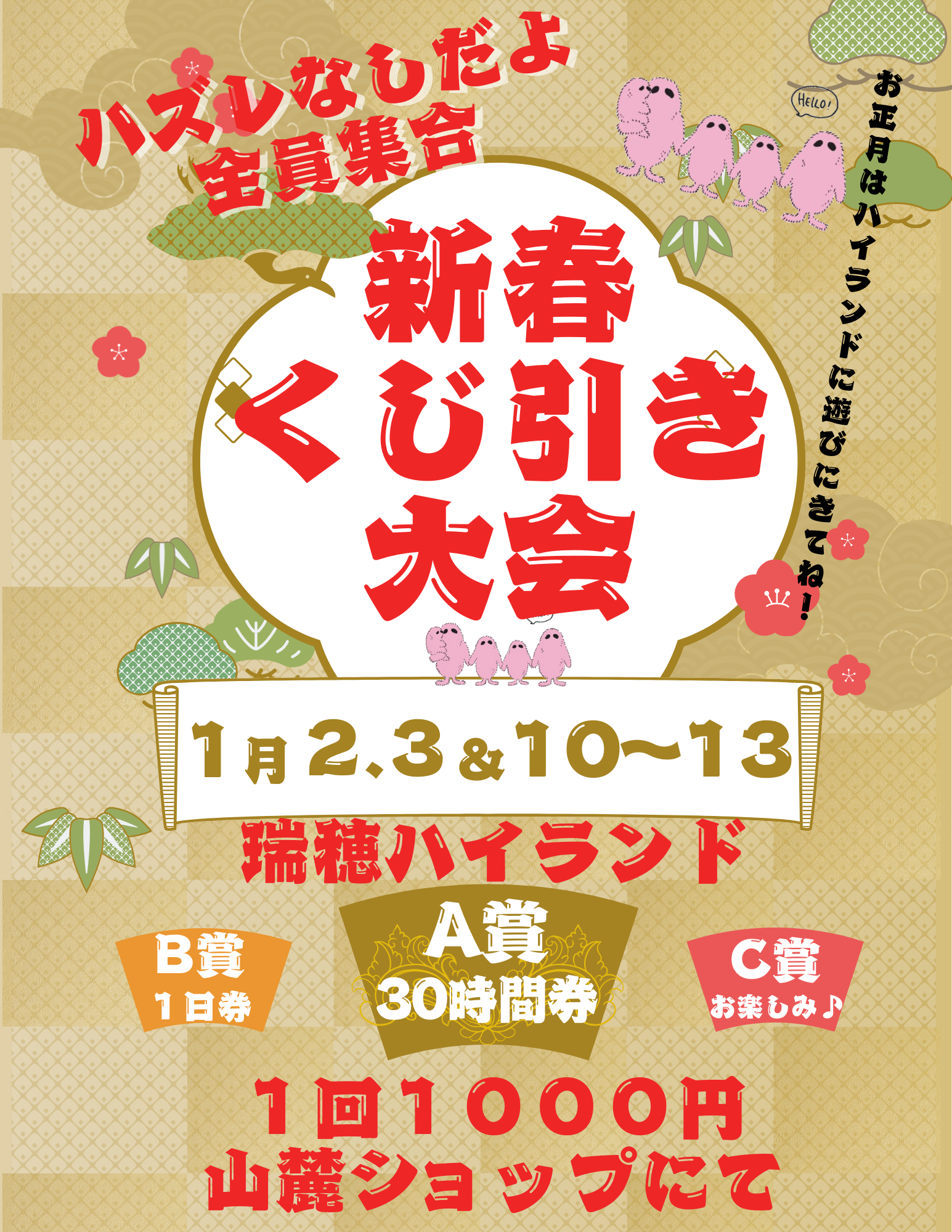瑞穂ハイランドでは、1月2,3日&10~13日まで新春おみくじ大会を開催します。