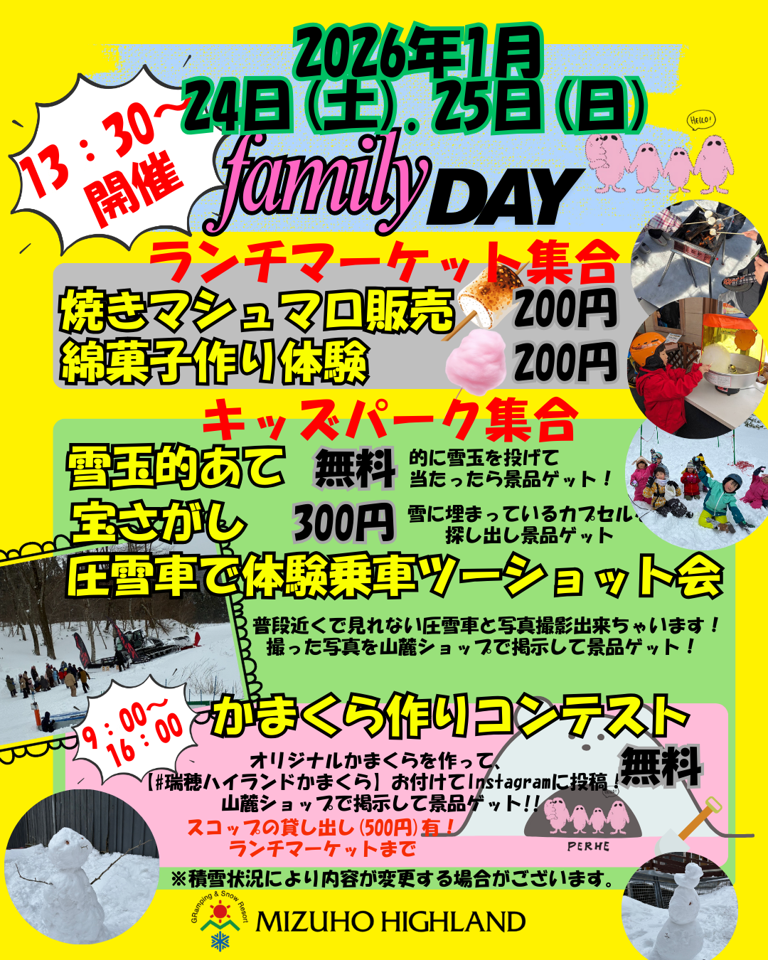 1月24日・25日(日)family day開催します。