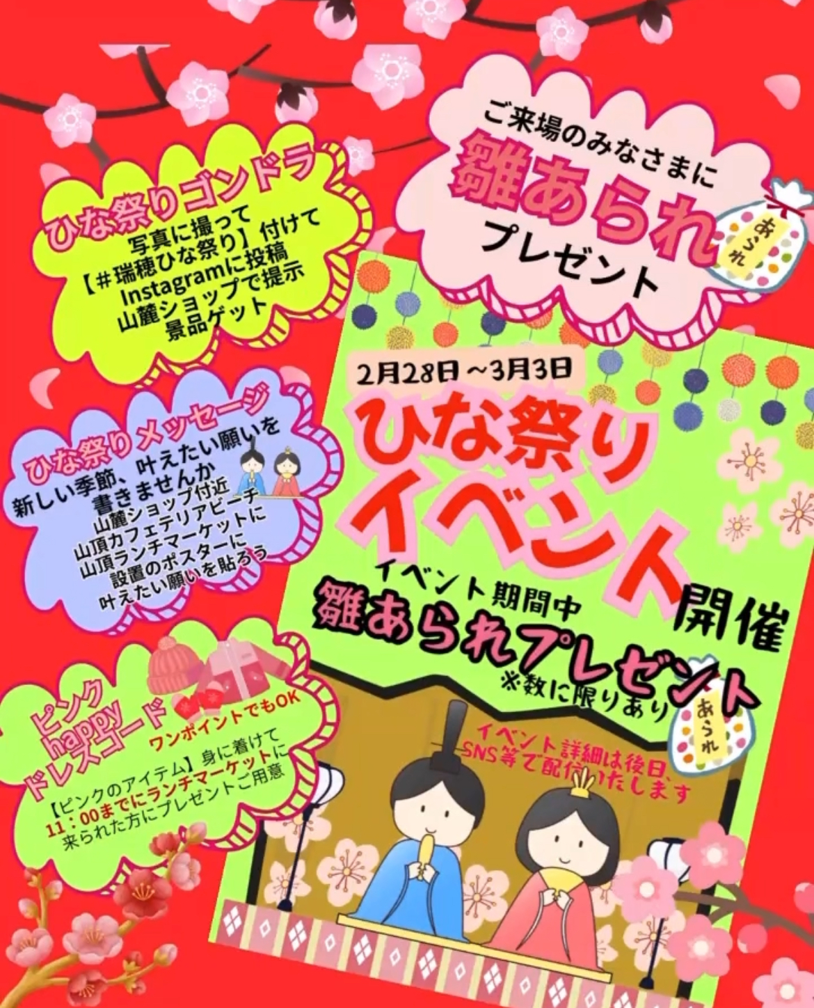 ①イベント開催中、ご来場のみなさまに雛あられプレゼント