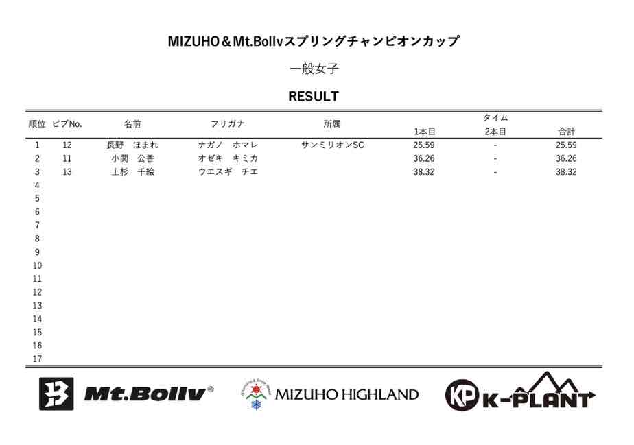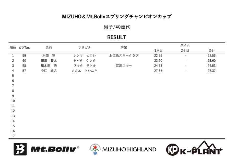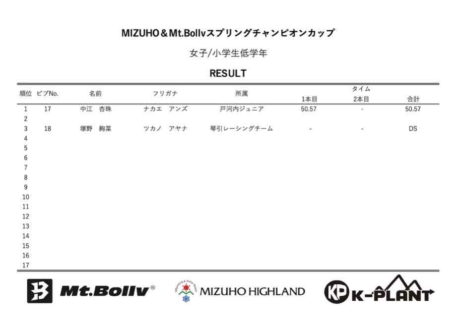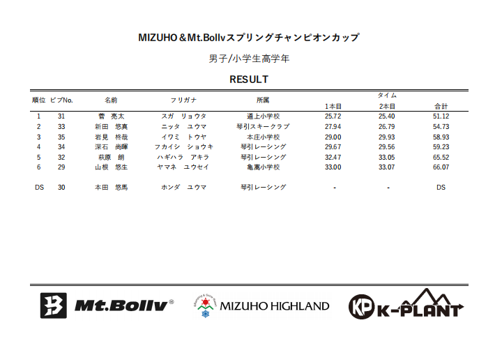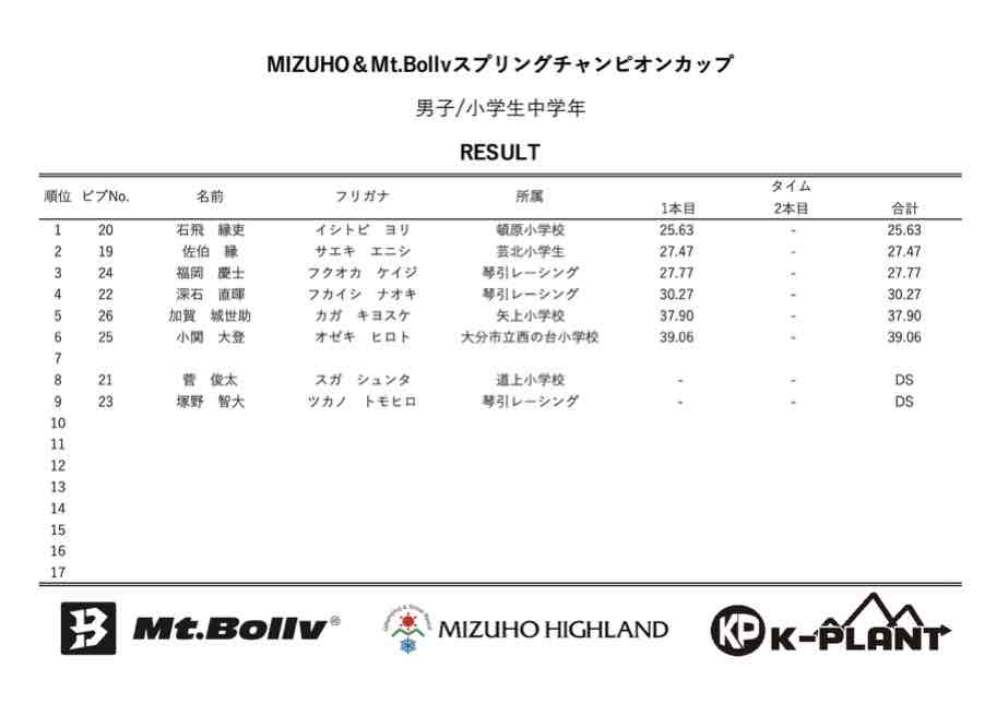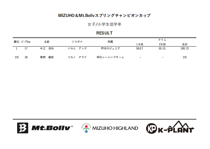 MIZUHO&Mt.Bollv スプリングチャンピオンカップリザルト
