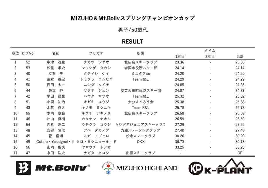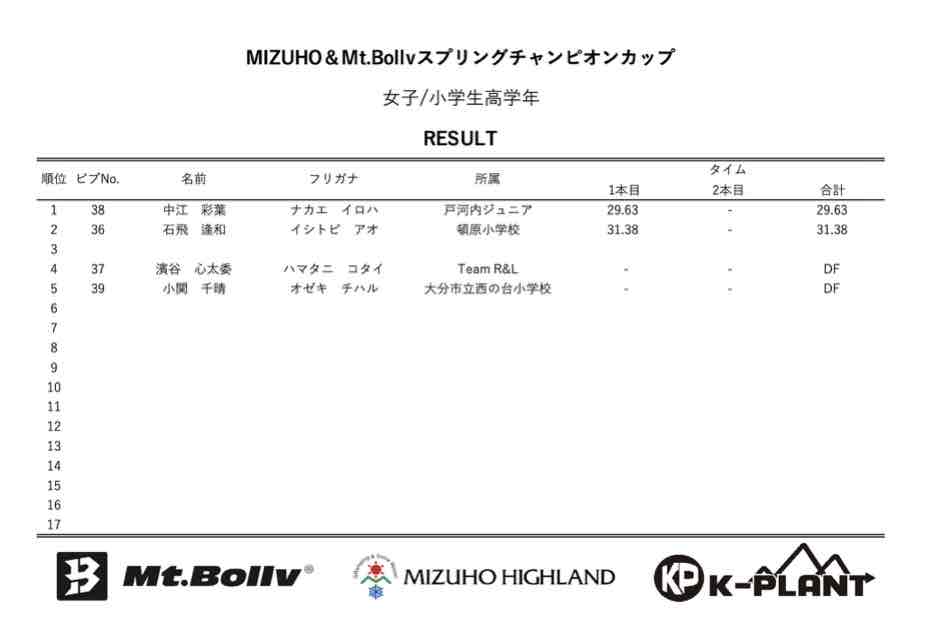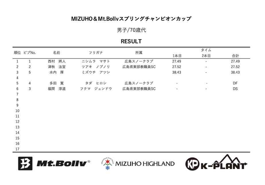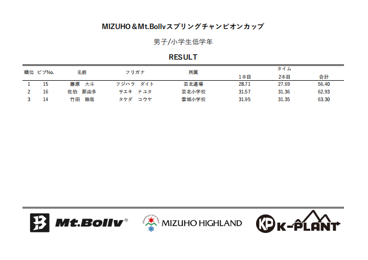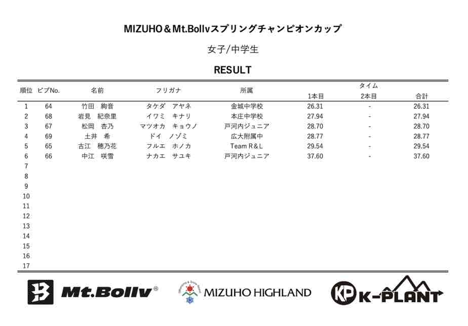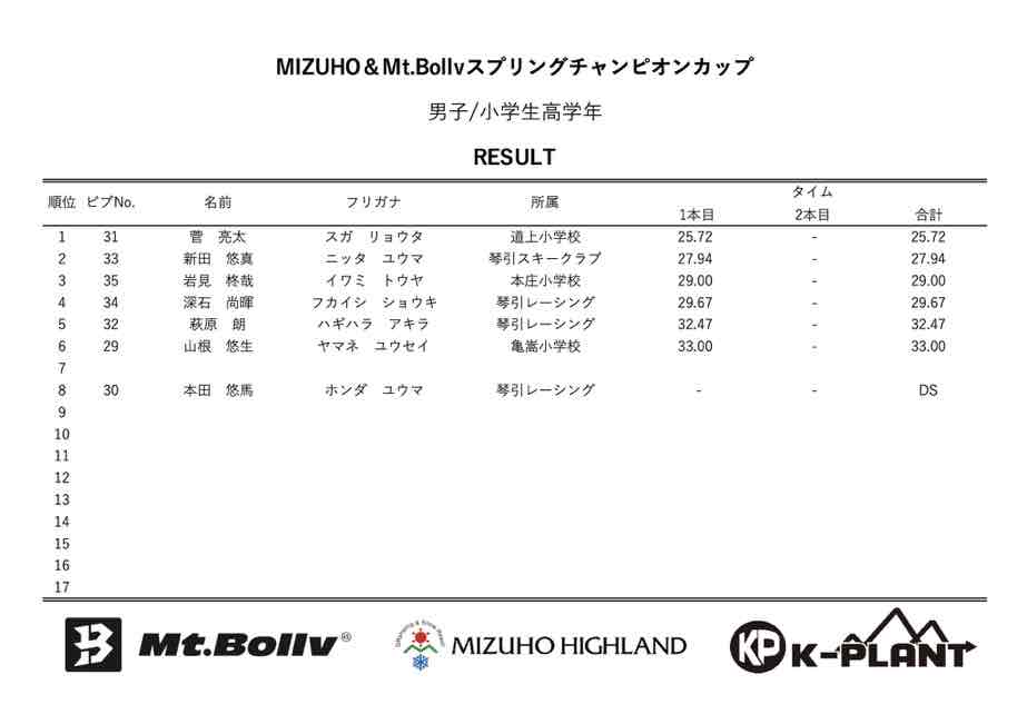 MIZUHO&Mt.Bollv スプリングチャンピオンカップリザルト