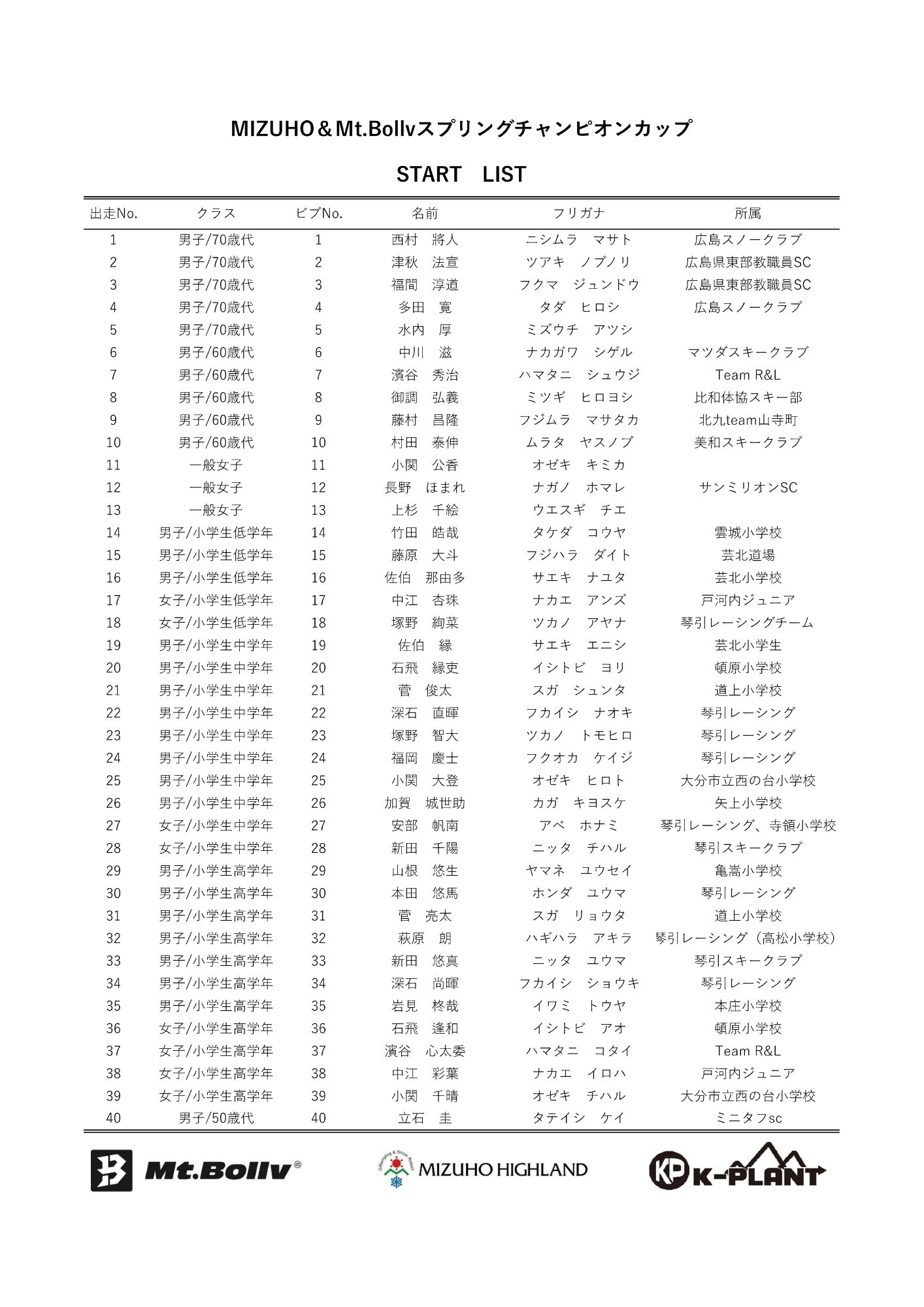 MIZUHO&Mt.Bollv スプリングチャンピオンカップスタートリスト&タイムテーブル