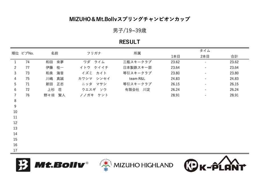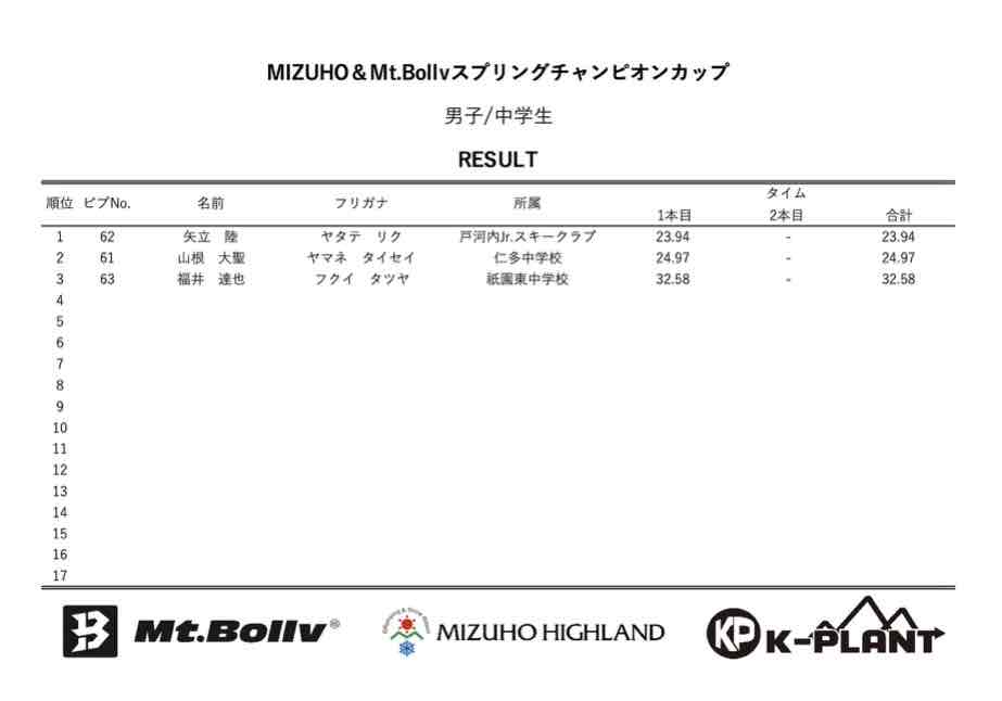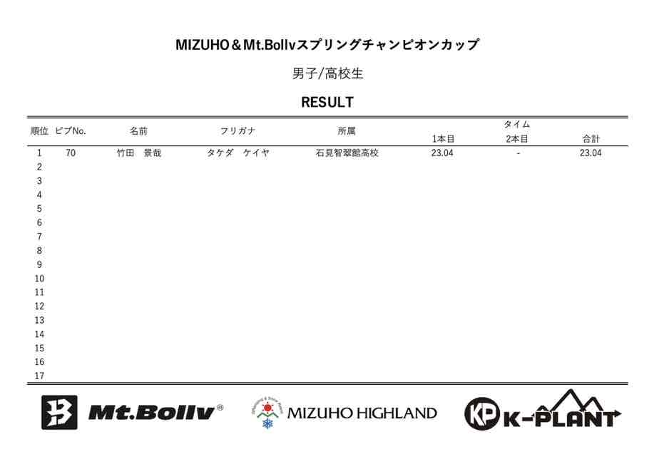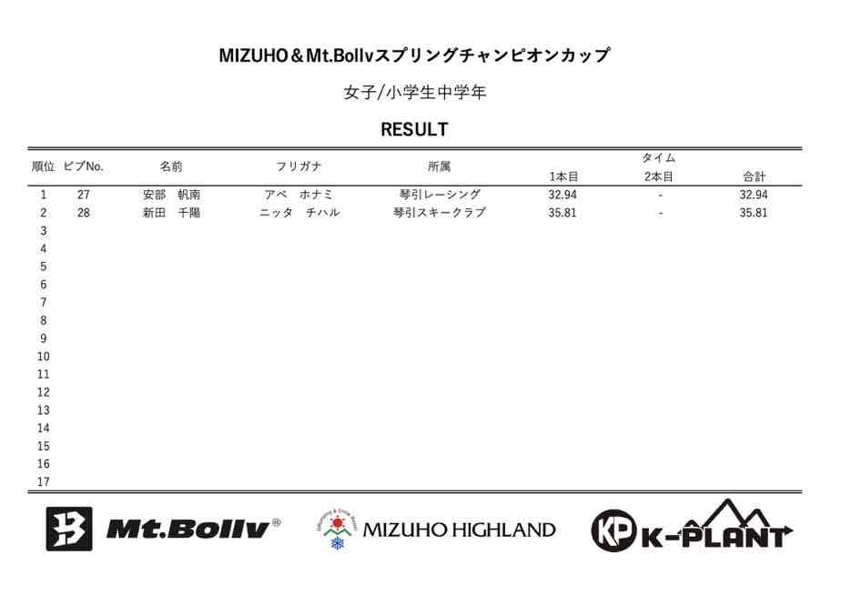 MIZUHO&Mt.Bollv スプリングチャンピオンカップリザルト